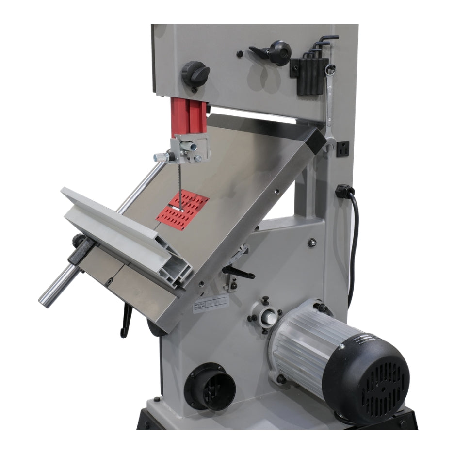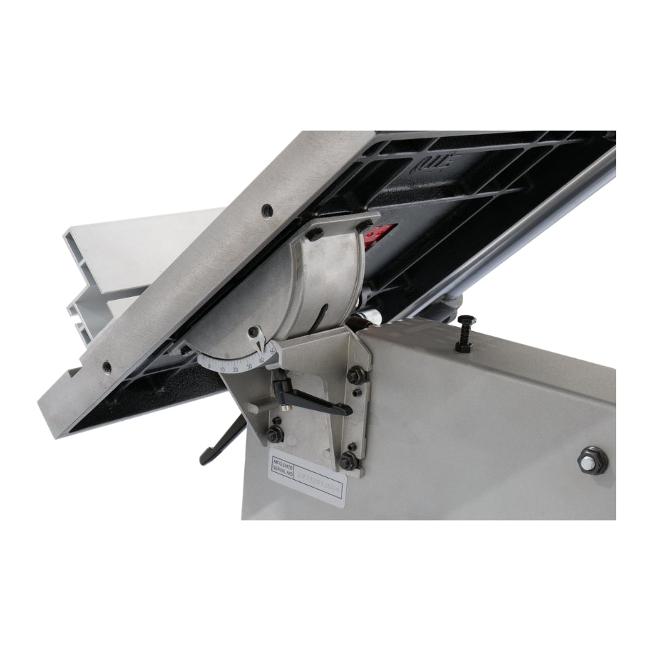 The V:10’s thoughtful design includes a quick-release magnetic under-table dust port, perforated throat-plate insert with levelling screws, and roller bearing blade guides with micro-adjustment. The hi/low fence with a solid steel rail ensures accurate cuts, while dual blade tracking windows, a quick-release blade tension lever, and dual blade speeds add convenience and control.