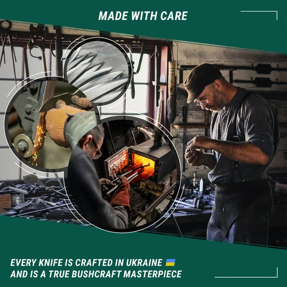 Made from durable carbon steel, the BSH1’s ultra‑sharp blade delivers power and precision for a wide range of outdoor tasks. From carving wood and cutting rope to prepping food or splitting kindling for a campfire, the knife handles it all with ease. Its sturdy build ensures reliability through every stroke, making it an essential tool for campers, hunters, and bushcraft enthusiasts alike.