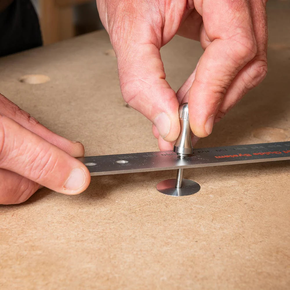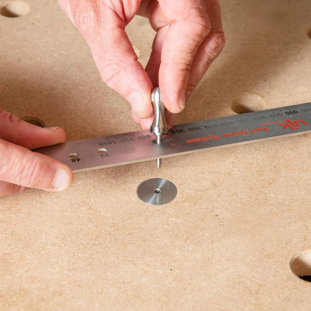 The UJK Parf Aluminium Revision Dogs are CNC machined aluminium dogs designed to enhance the accuracy and functionality of your multifunction bench top. Each dog features a central 3mm hole, providing accurate registration points for expanding the grid pattern on your existing multifunction bench top using the UJK Parf Guide System. These dogs form a reliable reference point for additional 20mm dog holes.